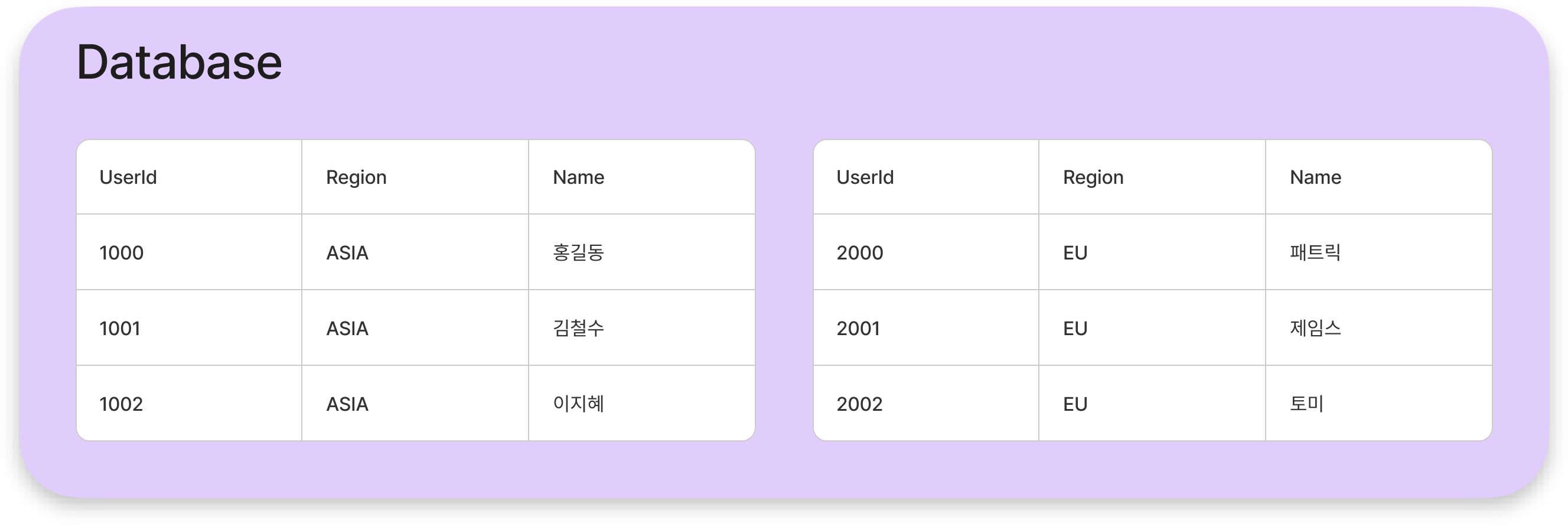 위와 같이 지역별로 사용자 데이터를 분산할 때 사용할 수 있다.