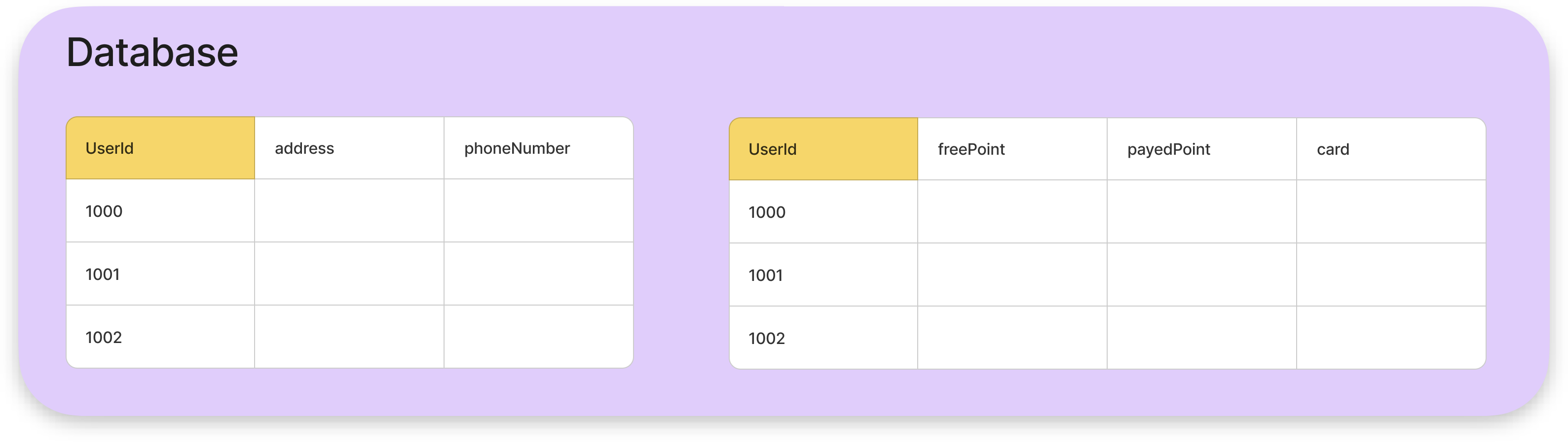 그리고 PK(UserId)를 통해서 두 테이블은 링킹되어 있어, 단일 유저에 대한 정보를 쉽게 가져올 수 있다.