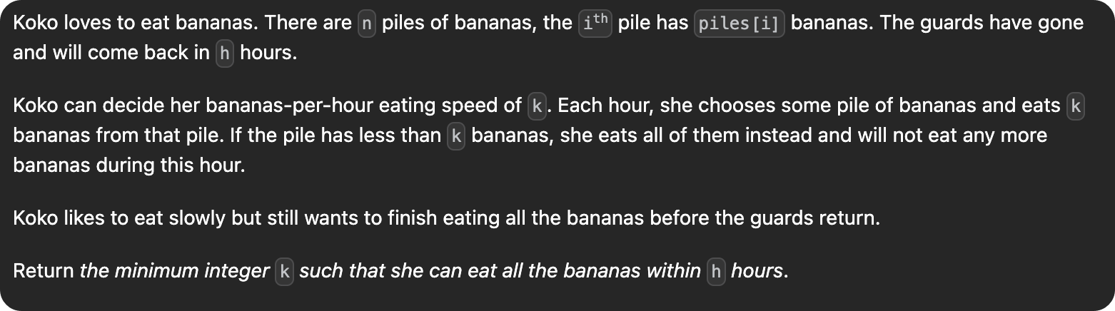 그리고 위의 예시에서 `k = 15` 일 때 34개의 바나나를 먹는데 3시간이 걸린다.