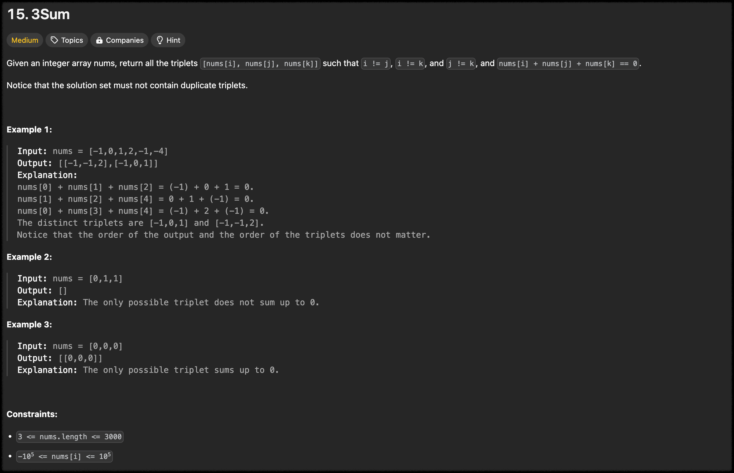 | 문제 링크 | https://leetcode.com/problems/3sum/description/ |