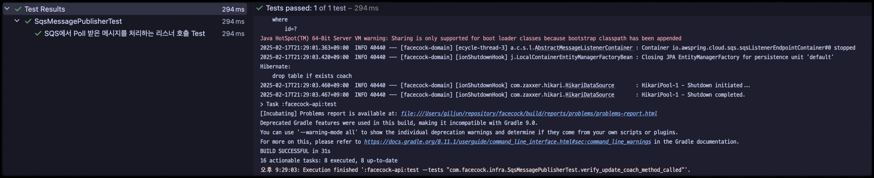 현재 프로젝트는 멀티 모듈 구조이기 때문에 SQS 관련 의존성은 Infra 모듈에 추가했다.