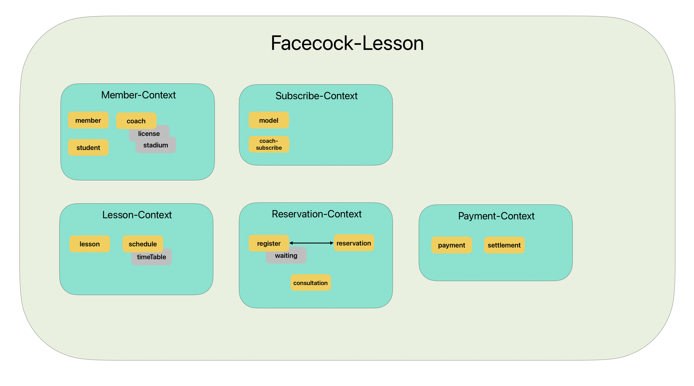 위에서 추출한 키워드를 Bounded Context로 정의해도 무리가 없다고 생각했다.