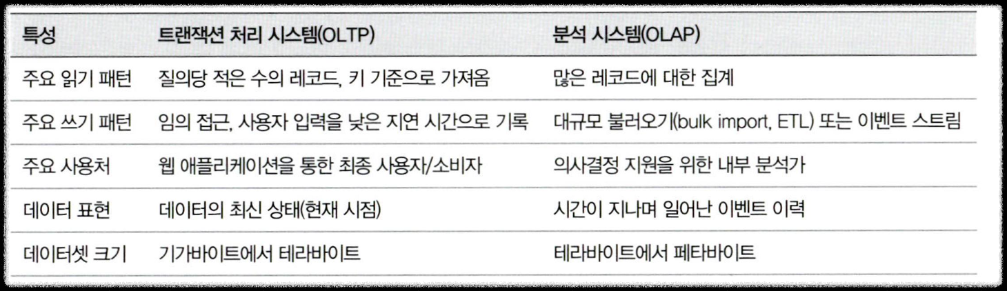 - 고수준에서 저장소 엔진은 OLTP, OLAP 두 가지 범주로 나뉨