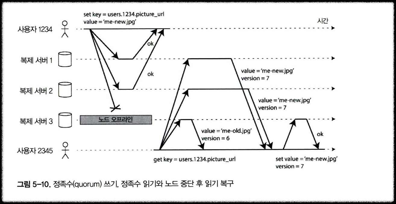 - 읽기(R개)에서 반드시 최신 데이터를 본다는 보장은 없음