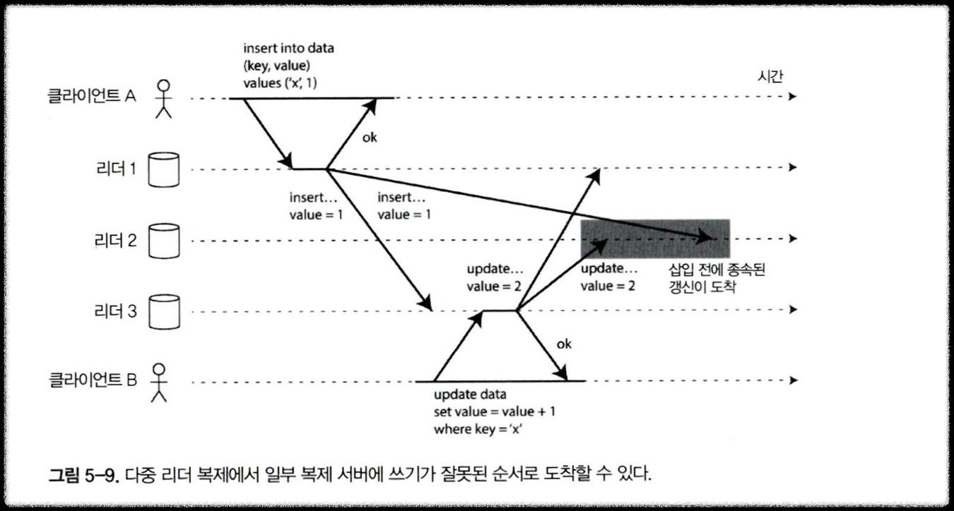 - 5-12를 보면 이벤트 순서가 정해지지 않았기 때문에 "동시 쓰기"라고 해야함