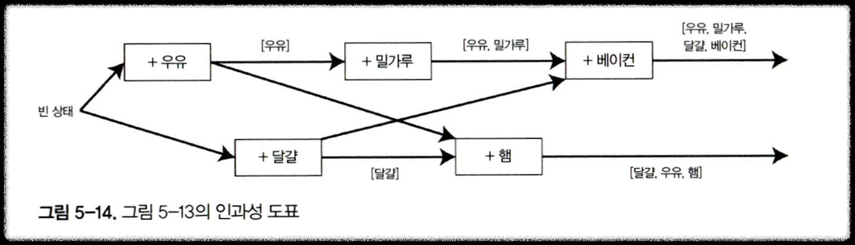 - 단순 합집합 결과 = [milk, eggs] → eggs가 부활