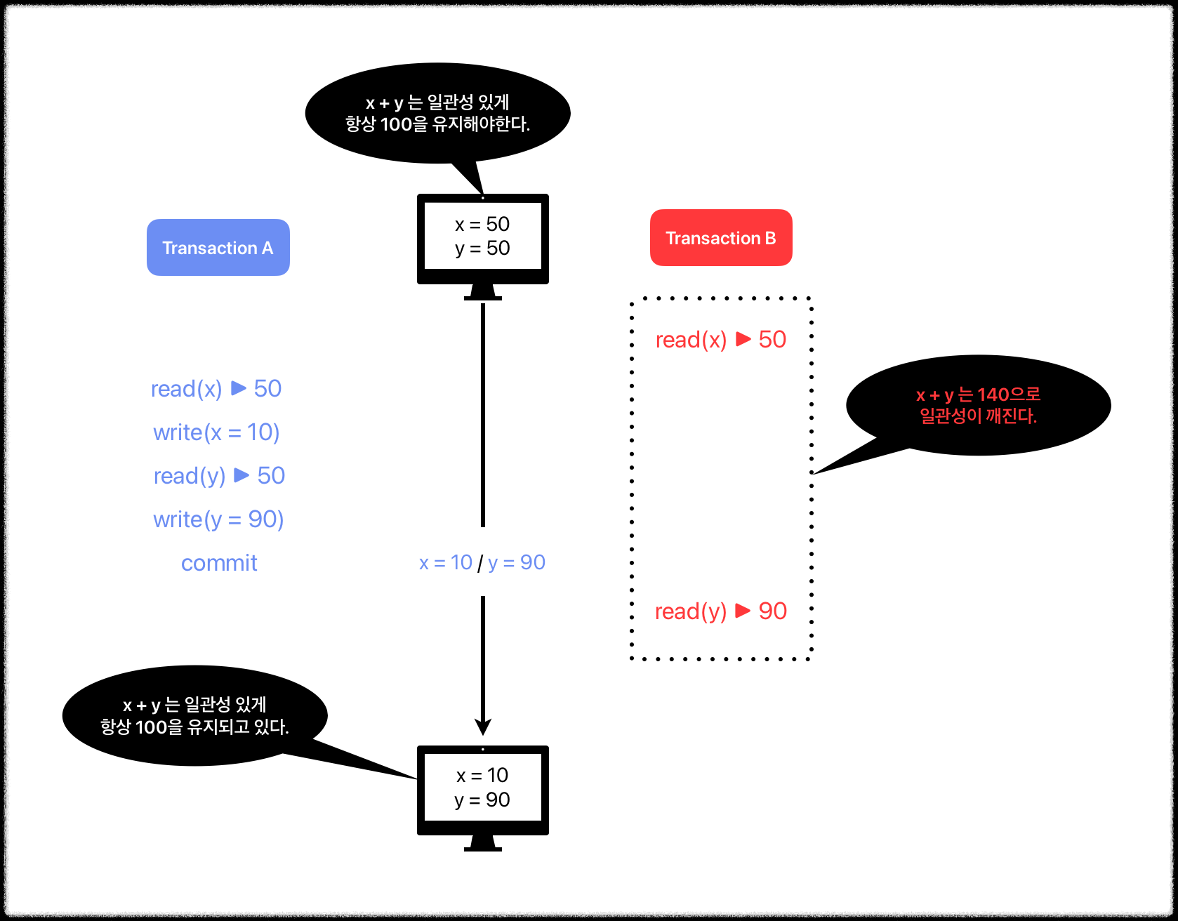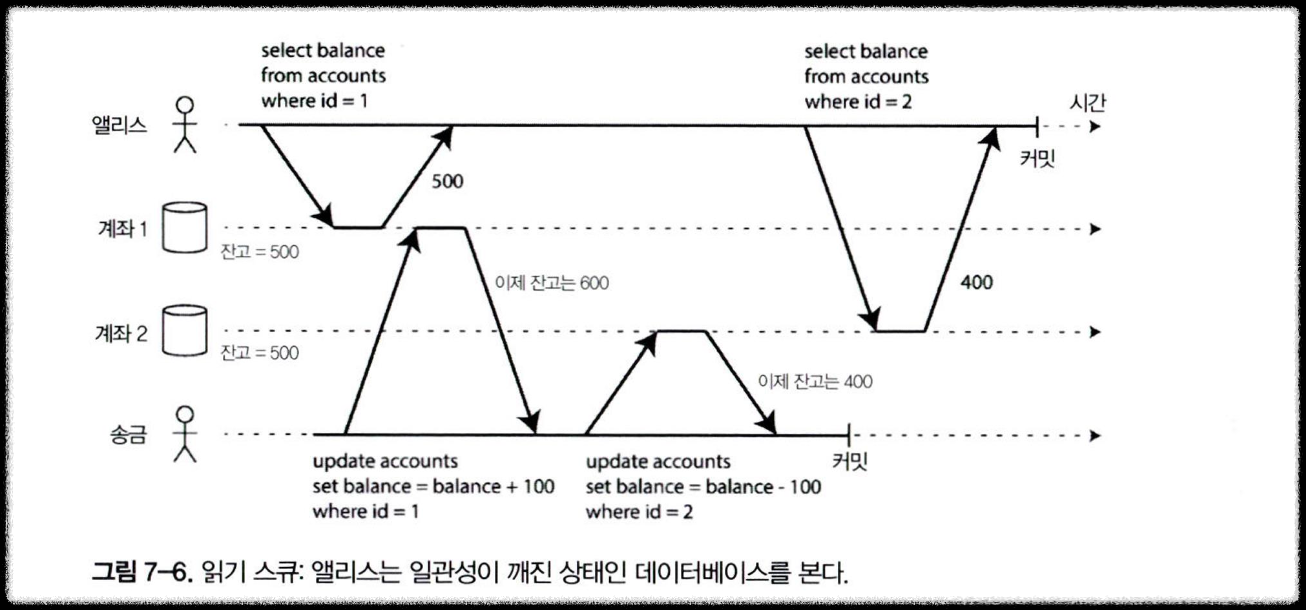 Read Skew(non repeatable read) : 논리적으로 일관성이 없는 데이터 읽기