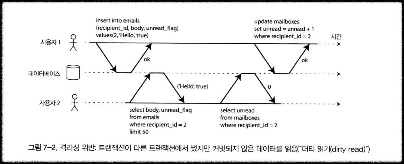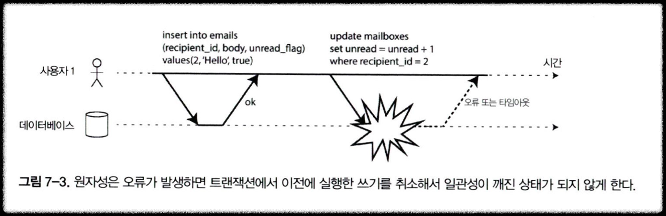 - 트랜잭션의 핵심 기능은 오류가 생기면 abort되고 안전하게 재시도할 수 있다는 것