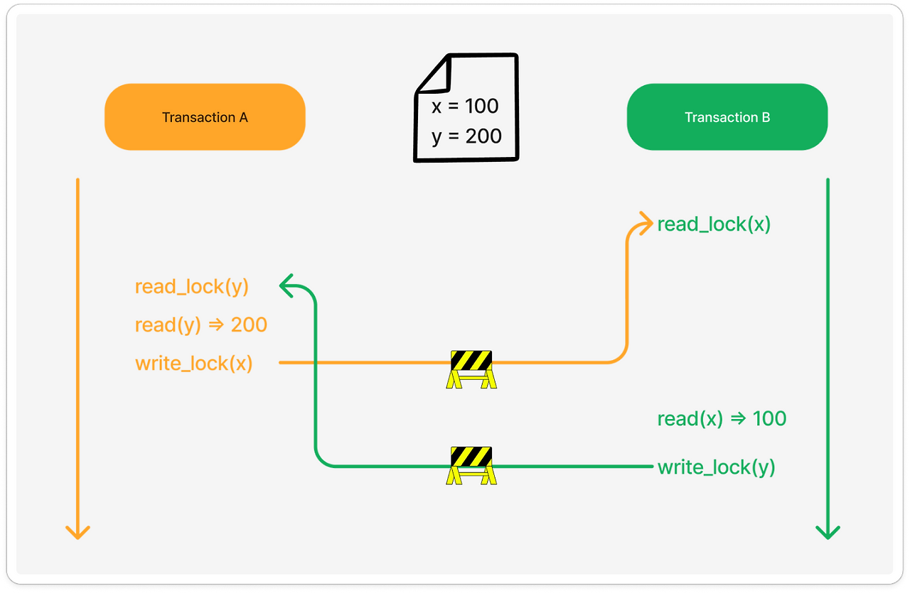 - 트랜잭션 43이 읽기를 실행하는 순간, 나중에 쓰기를 동반할지 아닐지는 아직 알 수 없다.