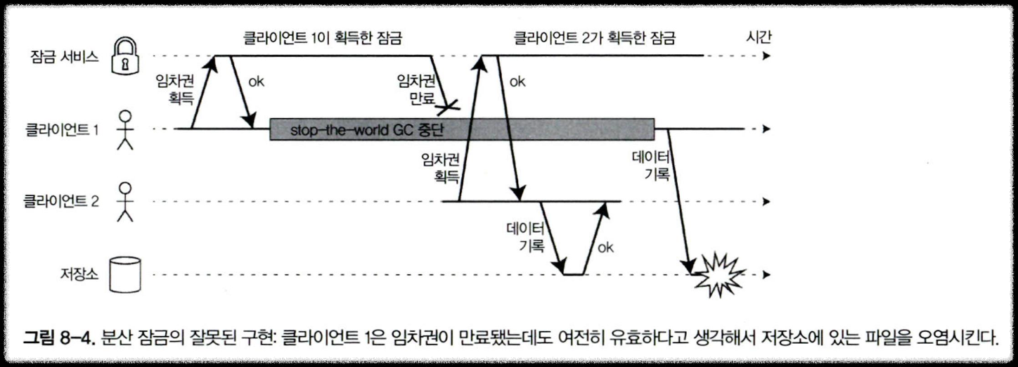 - 원인 : 잠금을 잘못 구현해서, GC 중단으로 인해서 클라1이 임차권이 유효하다고 판단
