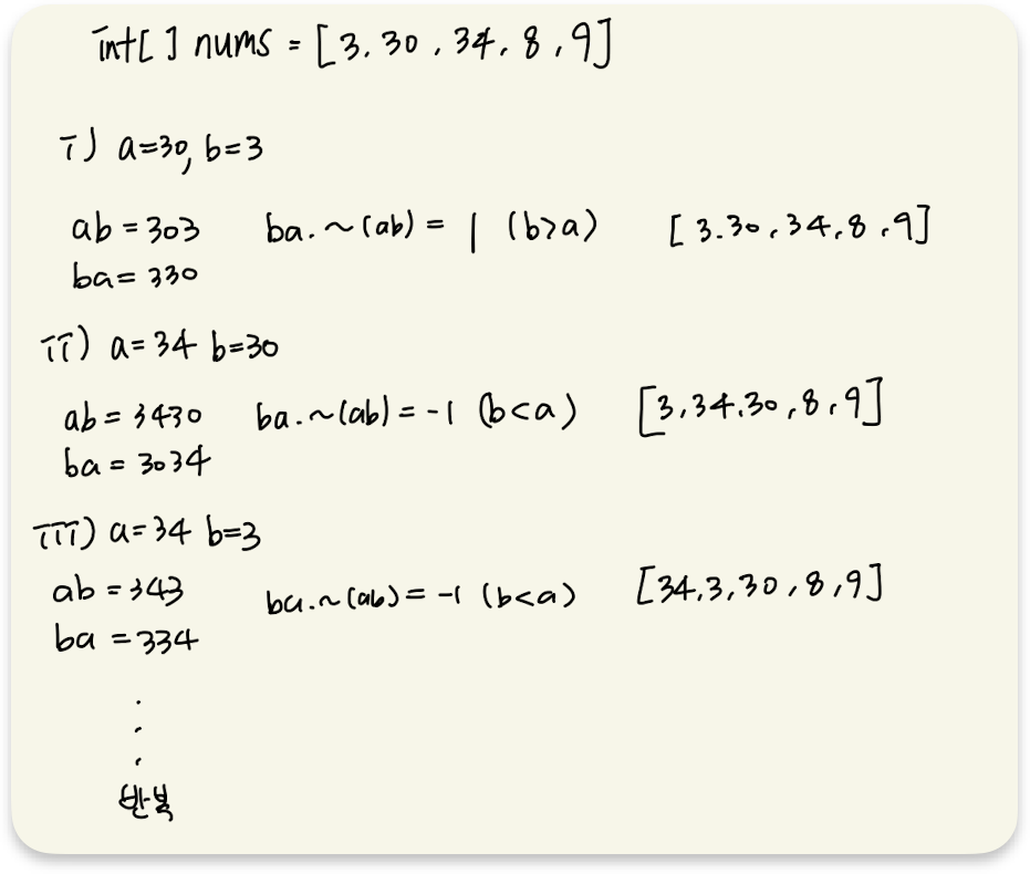 - ab 와 ba를 비교 후 내림차순 정렬